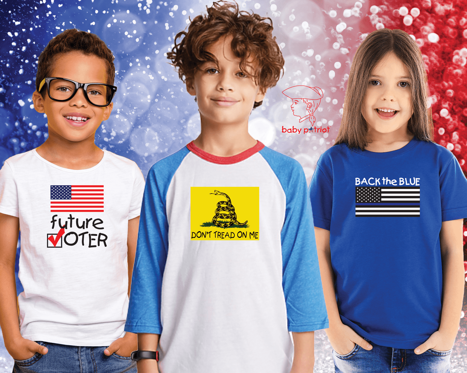 This is a call to arms to share a patriotic message of integrity, honor, bravery, and grit with your children and let folks around you know where you stand. Together, we can raise the next generation of American Patriots – one very real statement on one very cute kid at a time!